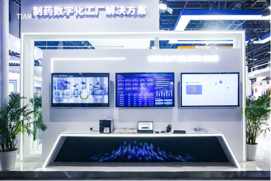 本屆展會天俱時集團位于核心展館國際一館,展臺科技風的設計形式,引得眾多觀眾駐足參觀交流?;瘜W醫藥工程總承包、環保技術與工程總承包沙盤實景展示,生物醫藥工程總承包項目案例展示,數字化工廠融合生物醫藥公用工程、化學合成原料藥工藝過程及生產可視化看板、MES系統現場模擬等諸多內容,全方位體現了天俱時為醫藥企業設施建設提供一站式解決方案的能力和實力,精彩紛呈。