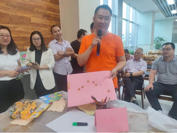 活動伊始,入職三、五、十周年的員工被隨機(jī)分成了不同的小組,用畫筆紛紛描繪出自己在天俱時的精彩瞬間以及對天俱時未來的展望。有的小組將彼此的人物形象畫在紙上并圍成了一個圈,表達(dá)出我們從五湖四海而來,因天俱時相遇相知,彼此成為人生旅途中最好的伙伴;也有的小組將天俱時描繪成一輛正在加速向前的汽車,不停探尋未來的方向。
