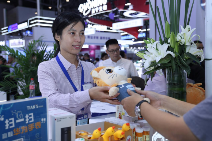 在本屆藥機展上,天俱時集團的品牌吉祥物—“天小獅”首發亮相,他將天俱時集團的形象擬人化。飄逸的鬃毛象征著天俱時集團二十五年來永不停歇,向前奔跑的姿態;尾部的點綴則化用了品牌logo中的標志性元素,意味著靈感的誕生和創新的力量。熱情、勇敢的天小獅也憑借自身可愛的形象吸引著眾多觀眾前來打卡。
